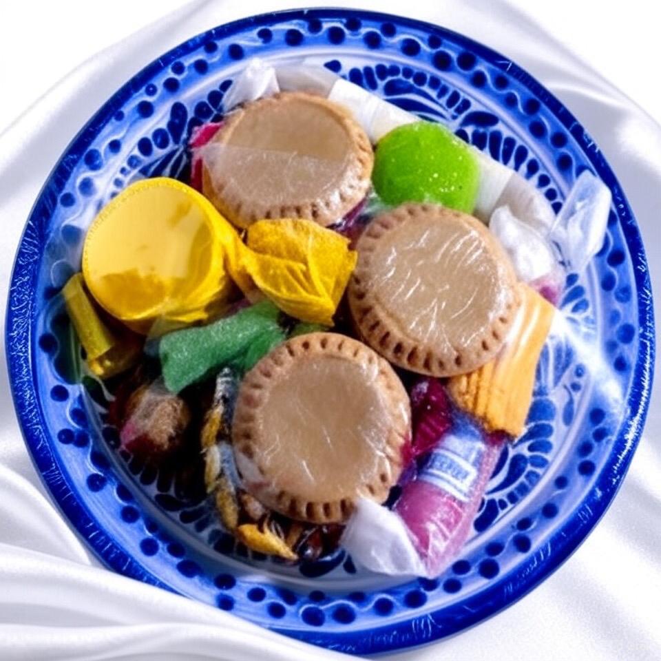 Plato de Talavera Poblana de 29 cm de diámetro con dulces tipicos poblanos